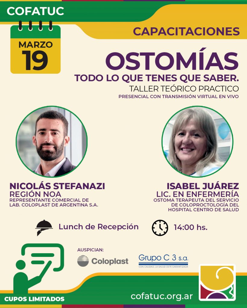 El Colegio de Farmacéuticos de Tucumán invita a participar del taller teórico–práctico “Ostomías: todo lo que tenés que saber”, que se realizará el jueves 19 de marzo a las 14:00 hs.